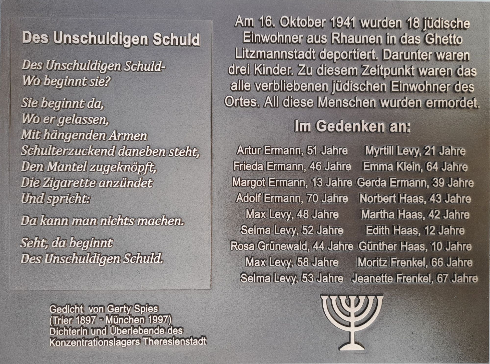 Rhaunen - Mehr als sechs Millionen Juden, Hunderttausende Sinti und Roma, mehr als einhunderttausend Kranke und Behinderte, rund zwanzigtausend politisch Verfolgte, etwa siebentausend Homosexuelle,