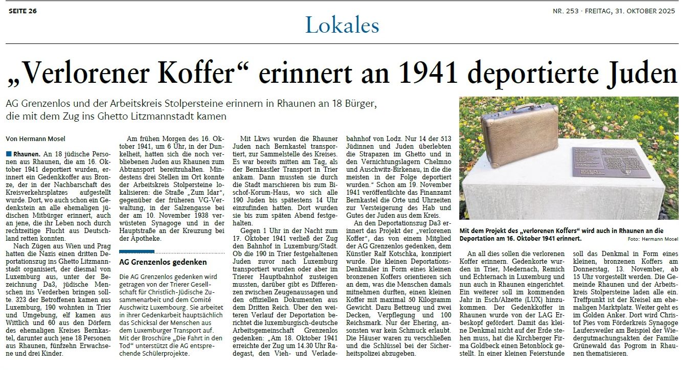 von Hermann Mosel in der "Nahe-Zeitung" vom 31. Oktober 2025: "'Verlorener