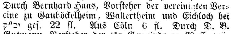 "Durch Bernhard Haas, Vorsteher der vereinigten Vereine zu