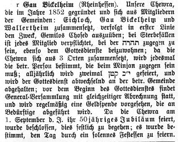 im "Israelitischen Familienblatt" vom 15. Mai 1902: "Gau Bickelheim