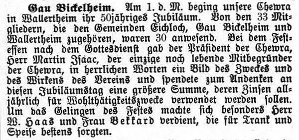 Bickelheim. Am 1. d. M. beging unsere Chewra in Wallertheim