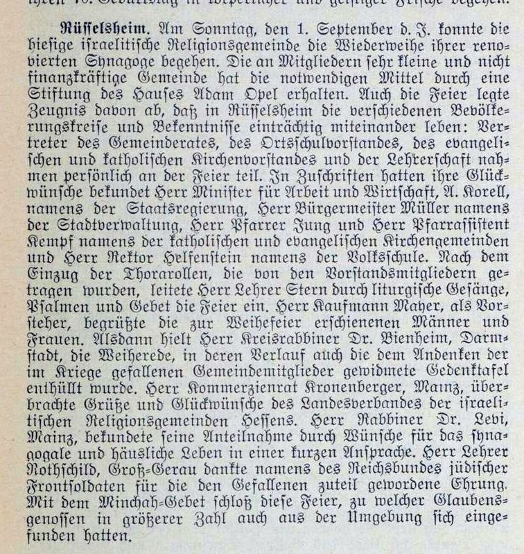 offizielle Bezeichnung der Gemeinde: 'Israelitische Religionsgemeinde Rüsselsheim