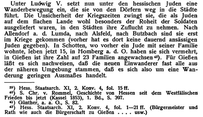einige jüdische Personen in Schotten, doch erst nach dem Dreißigjährigen
