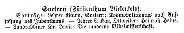 unten). Die Gemeinde gehörte zum Landrabbinat Birkenfeld mit Sitz in Hoppstädten.