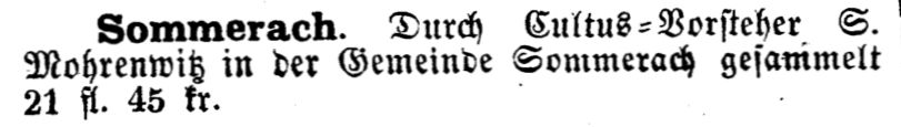in der Zeitschrift "Der Israelit" vom 1865: ""Sommerach. Durch