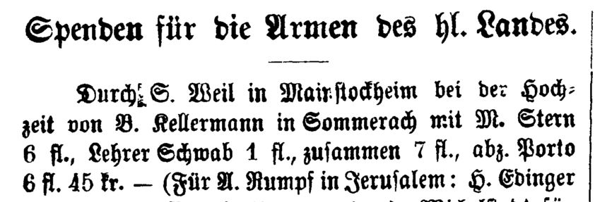 Heiligen Land": "Mainbernheim. Durch Distriktsrabbiner J. Adler: