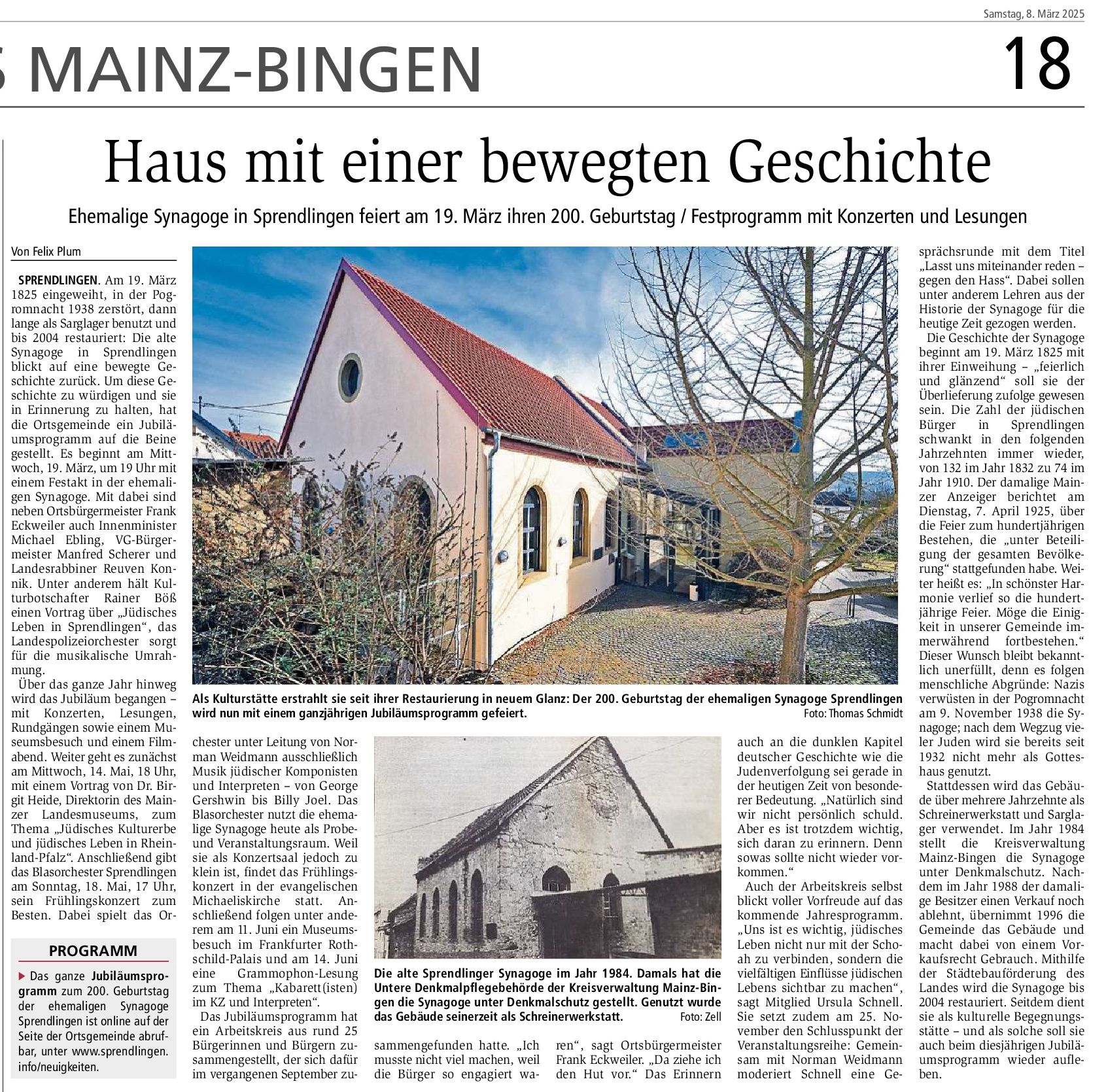 Geschichte. Ehemalige Synagoge in Sprendlingen feiert am 19. März ihren