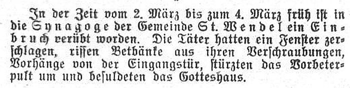 die Synagogengemeinde St. Wendel aufgelöst. Am 22. Oktober 1940 wurden