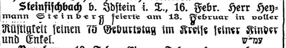 bei Idstein im Taunus, 16. Februar. Herr Heymann Steinberg feierte am
