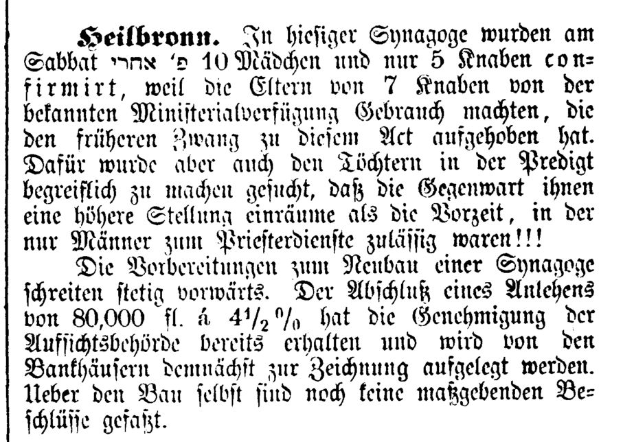 and an independent community was constituted. In 1867, Heilbronn became the seat
