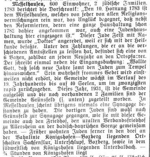 Zobel von Giebelstadt gehörenden Messelhausen bestand eine jüdische Gemeinde