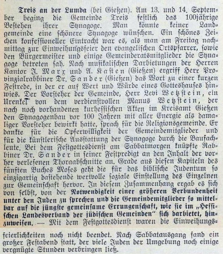 durch Rabbiner Dr. Sander aus Gießen erteilt. Die Gemeinde gehörte zum
