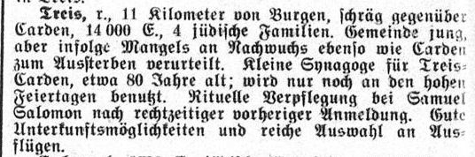 im "Israelitischen Familienblatt" vom 8. Mai 1930: "Treis,