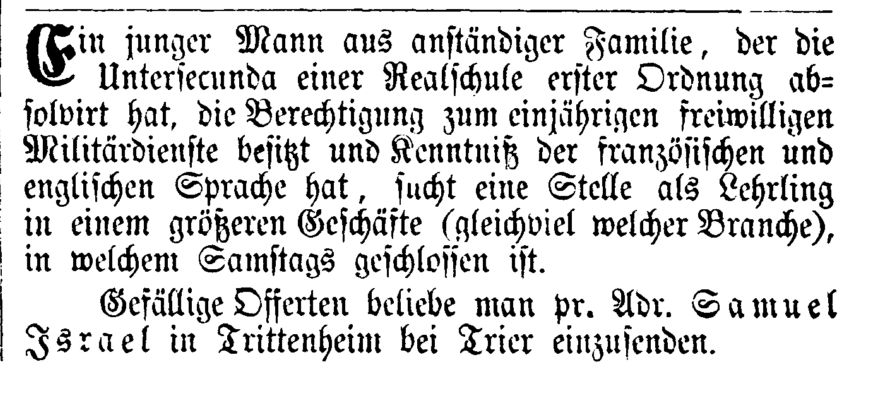im "Israelitischen Familienblatt" vom 19. Juli 1928: "Trittenheim