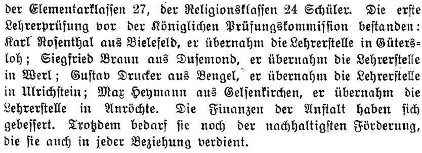 unterrichtet wurden. Als (ehrenamtliche) Kantoren waren Siegmund Stern und