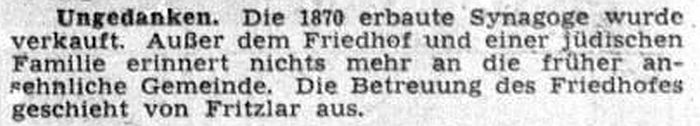 einzugliedern. Die Synagoge wurde im August 1937 verkauft, der Friedhof seitdem