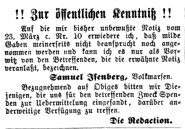 2.330 Einwohnern), waren die Vorsteher der Gemeinde Salomon Hamberg (gestorben
