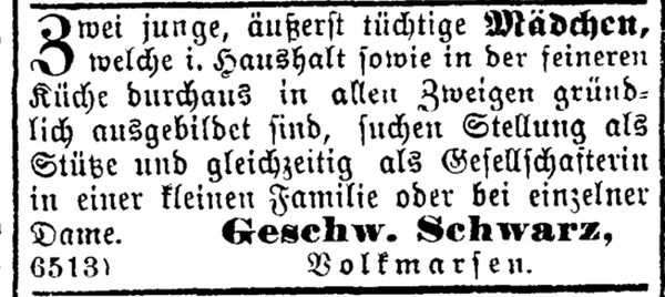 unter Leitung der Frau von M. Schwarz, 1892/94 zusammen mit Fr. Meyerhoff, 1895