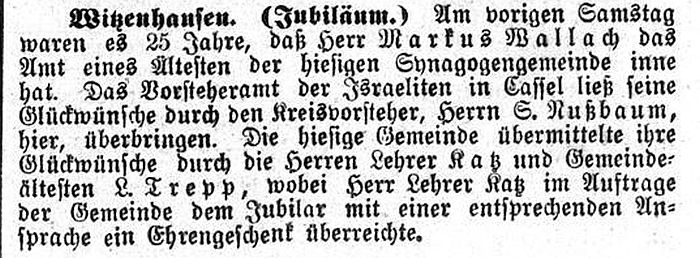 Jude dem Witzenhausener Schultheißen 2 Gulden. 1461 bezahlte dieser dem Juden