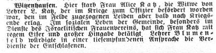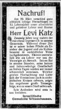 Frankenberg); Levi Katz (Lehrer von 1902 bis zu seinem Tod