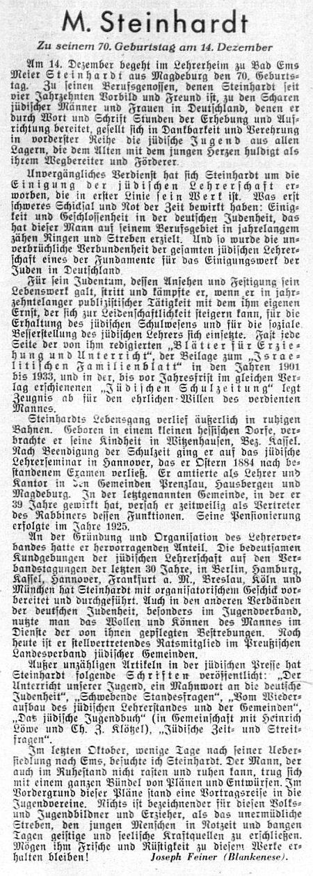 1922, er unterrichtete jedoch kaum mehr als 10 Kinder), Hugo Blumenfeld