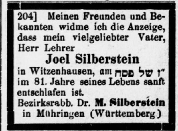 Silberstein (seit 1813 bis um 1855; Vater des Rabbiners Dr. Michael