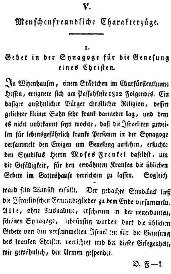 - Dr. Meier Frenkel (geb. 1813 in Witzenhausen als Sohn des Bürgers und