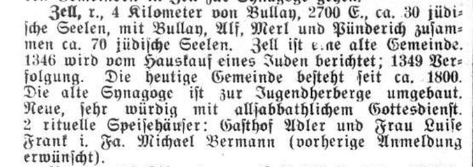 In Zell: 1808 23 jüdische Einwohner, 1822 37, 1858 49, 1895 41.