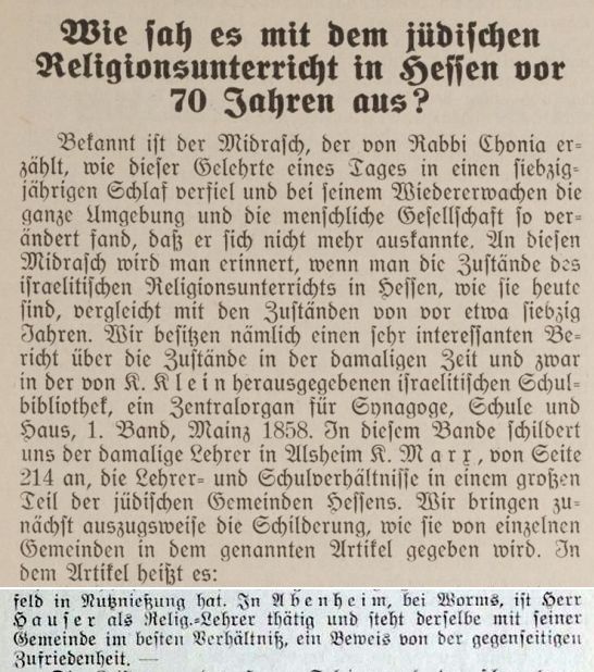 als jüdischer Lehrer in Abenheim ein Herr Hauser genannt (u.a. "Der Israelit.