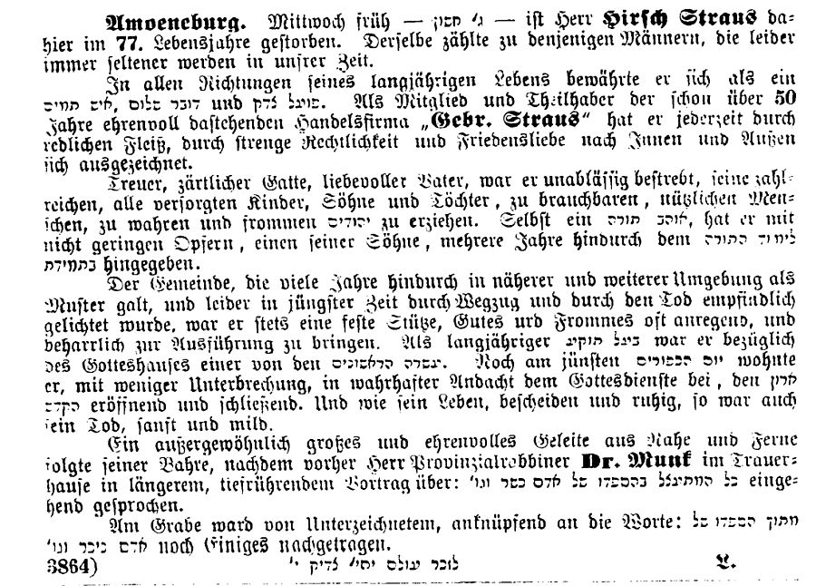 1885 Herr Strauß, um 1887/1897 S. Strauß, 1901 M.A. Strauß.