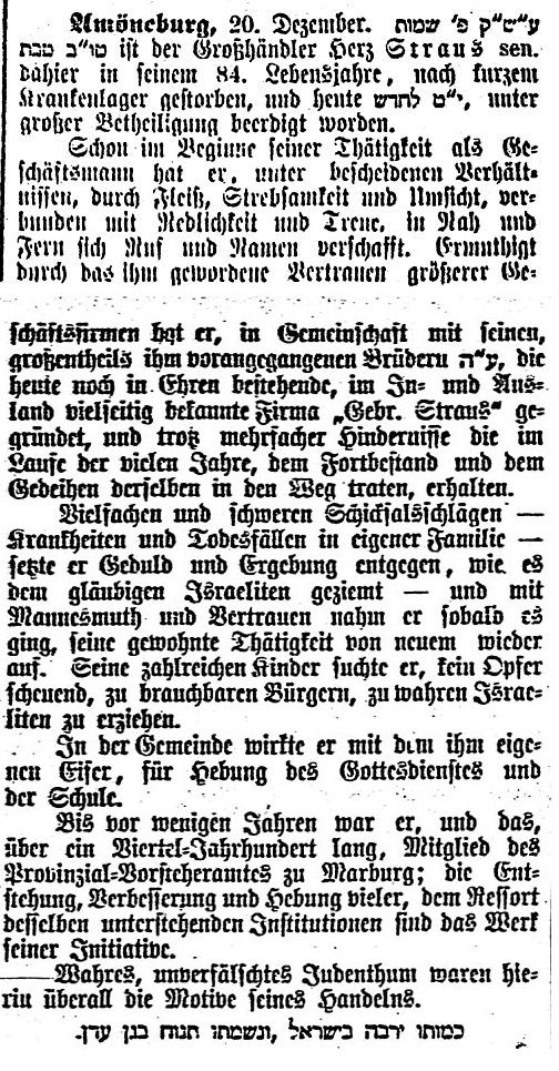 Von den Gemeindevorstehern werden genannt: um 1860 Salomon Strauß, um