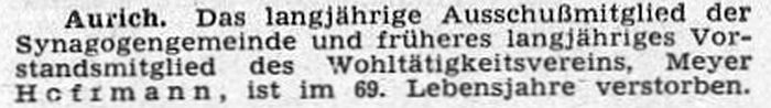 Beiträgen zur jüdischen Geschichte in Aurich wurden in jüdischen Periodika