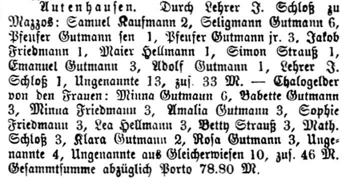 1865 war W. Strauß Religionslehrer in Autenhausen ("Der Israelit" vom