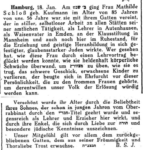 der Zeitschrift "Der Israelit" vom 23. Dezember 1909: