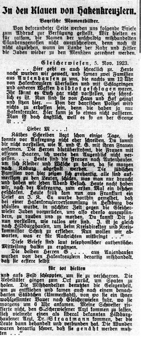 Autenhausen verließen. Anlass war die Pogromnacht vom 3./4. November 1923,