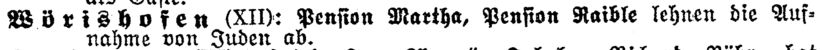 Mai 1930: "Wörishofen: Pension Martha, Pension Raible lehnen die