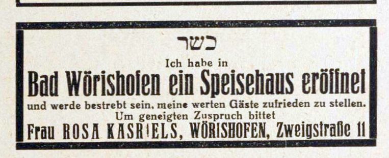 Seit Anfang der 1920er-Jahre- Speisehaus von Rosa Kasriels (Anzeigen von 1921/24)