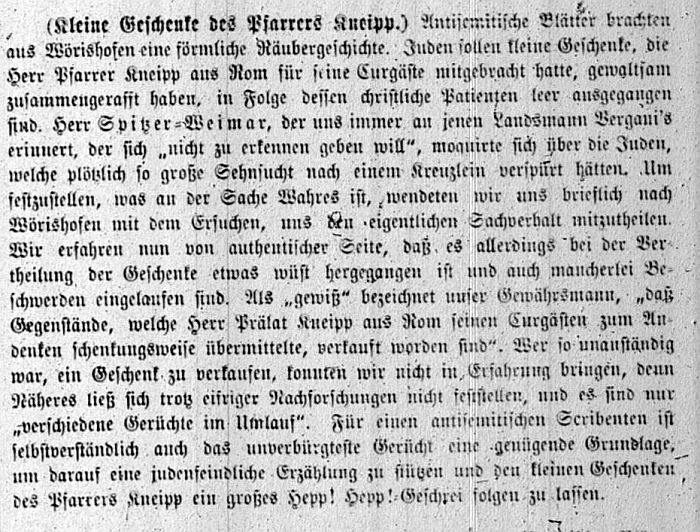 Ende des 19. Jahrhundert kamen auch jüdische Kurgäste nach Wörishofen. Unter