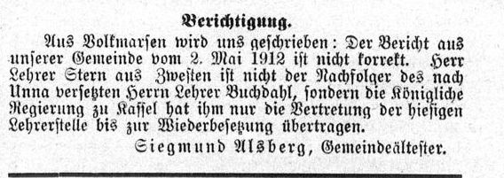 nach 1872 und bis 1888 Wolf Amram aus Diemerode, der mehrere