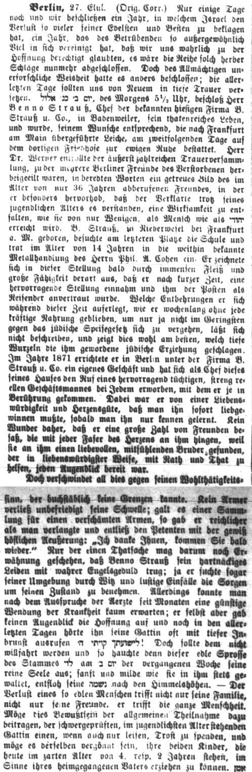 aus Straßburg genannt (Israelitisches Familienblatt vom 29.8.1900 S. 5).