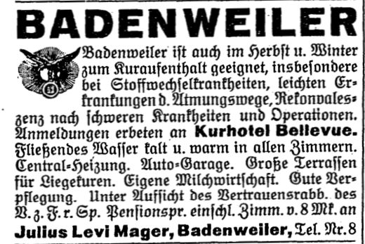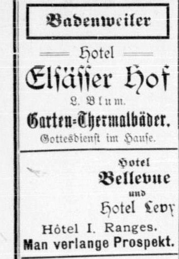 Schochet (Schächter) angestellt. Viel jüdische Prominenz kam nach Badenweiler,