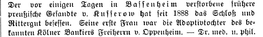 Bassenheim verstorbene frühere preußische Gesandte v. Kusserow hat seit