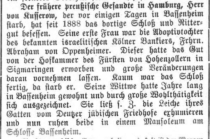 Bassenheim lebte. Abraham Freiherr von Oppenheim (1804-1878) war Bankier in Köln - zu