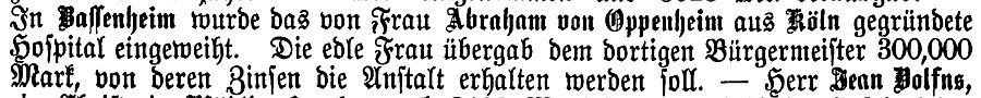 Stiftung einer Krankenhauses der Baronin von Oppenheim an die