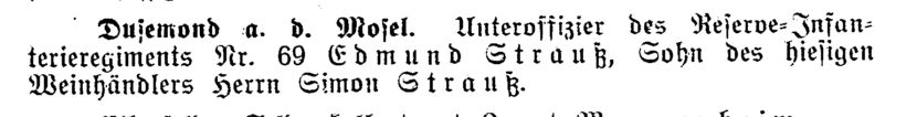 15.4.1891 in Dusemond, gef. 27.8.1914) und Vizefeldwebel Edmund Strauß (Sohn des