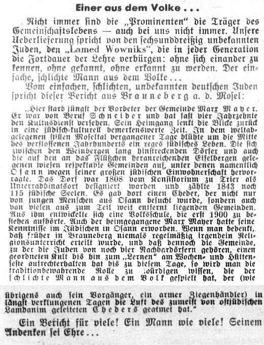 inzwischen 36 Jahren - Marx Mayer (gest. 1935, siehe Bericht unten).