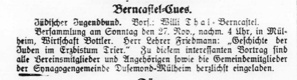 In Brauneberg (bis 1925: Dusemond) bestand eine jüdische