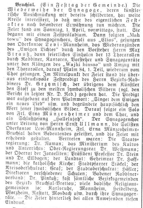 im Bereich der Stadt angelegt. 1827 wurde Bruchsal Sitz eines Bezirksrabbinates.