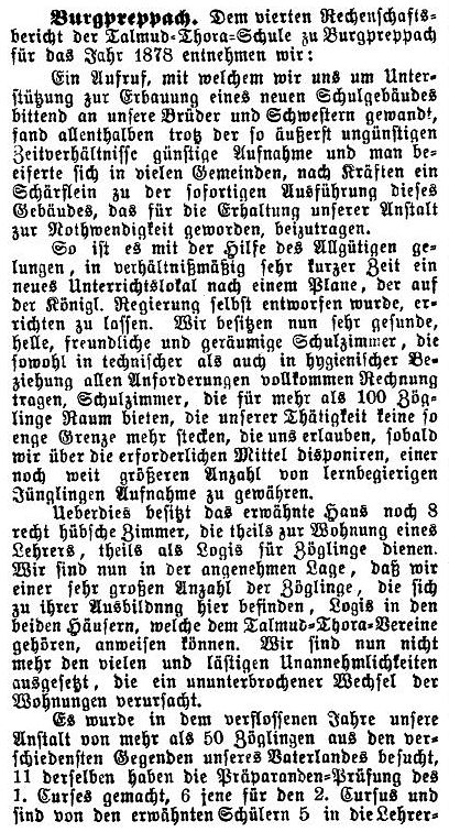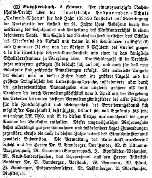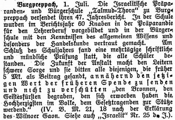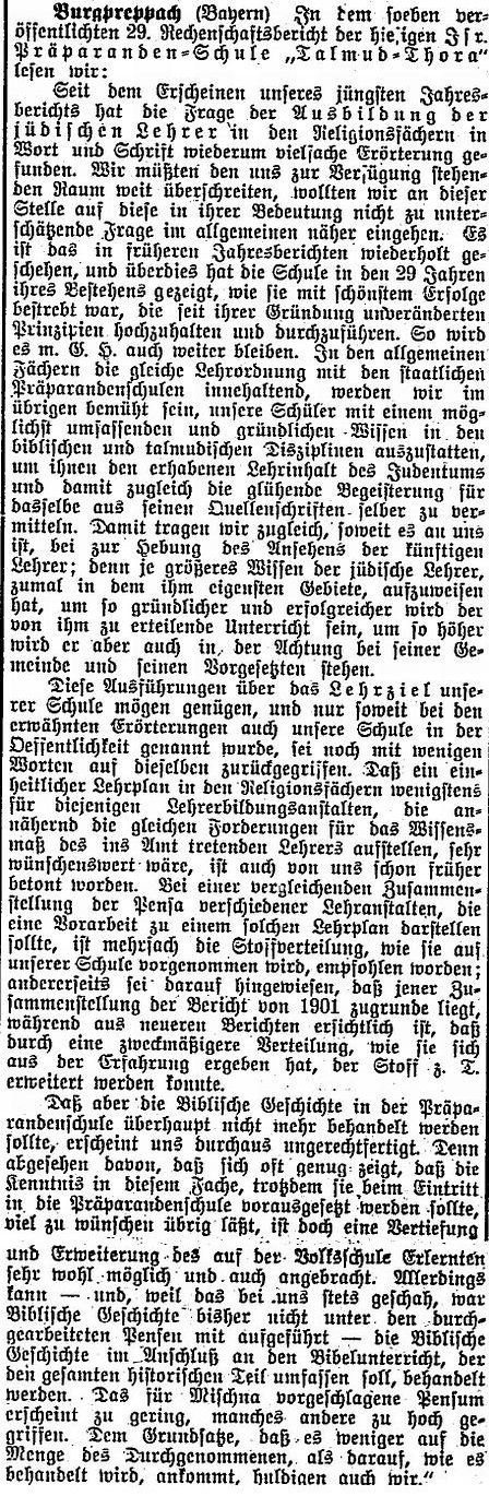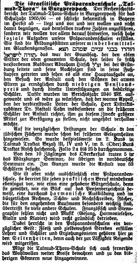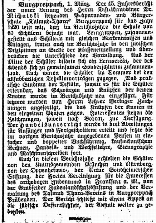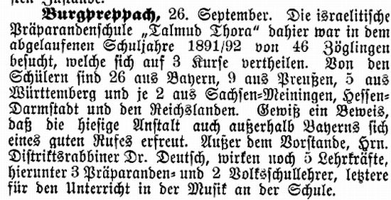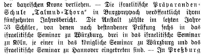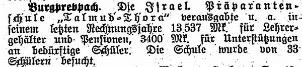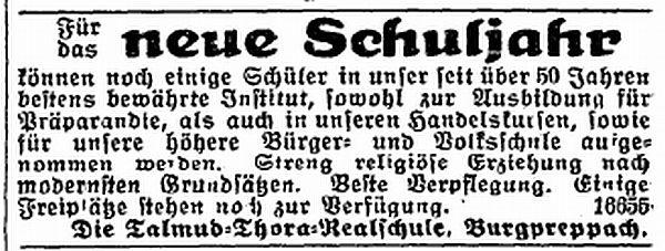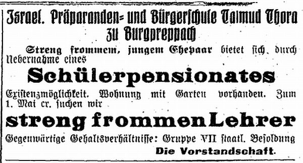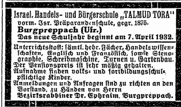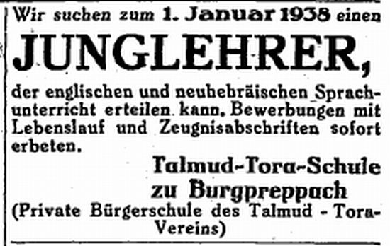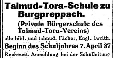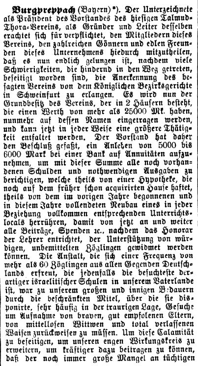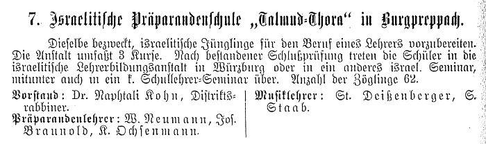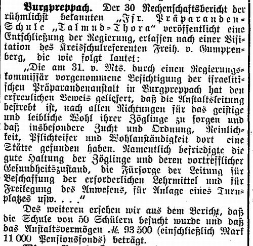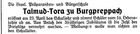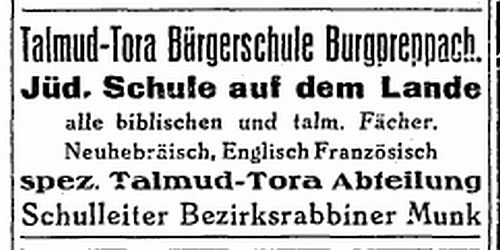 und Bürgerschule Talmud Thora Burgpreppach (Unterfranken). Für den