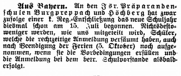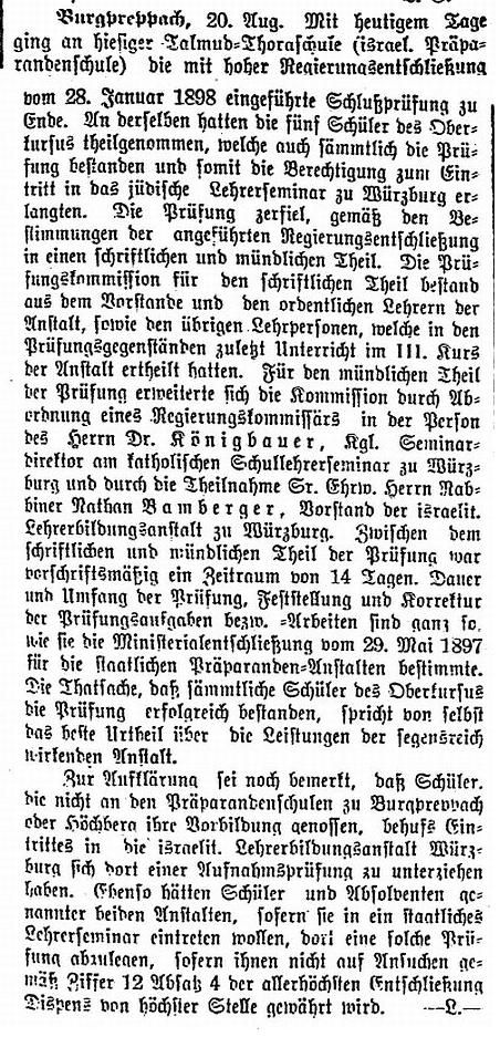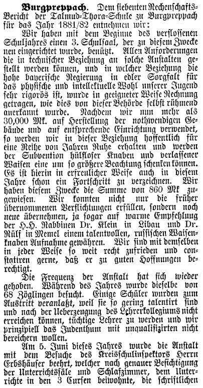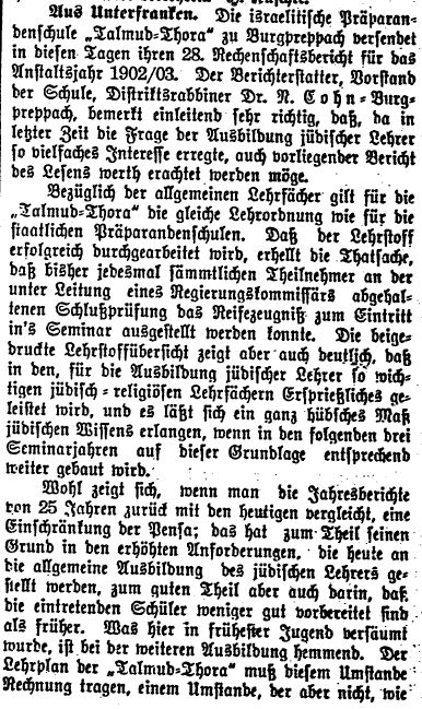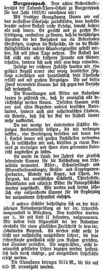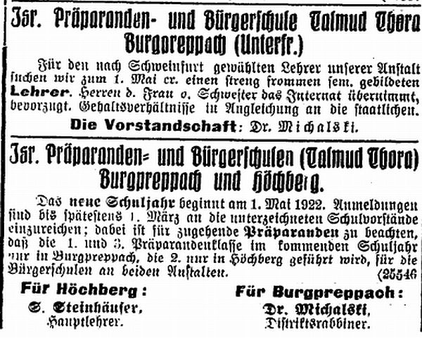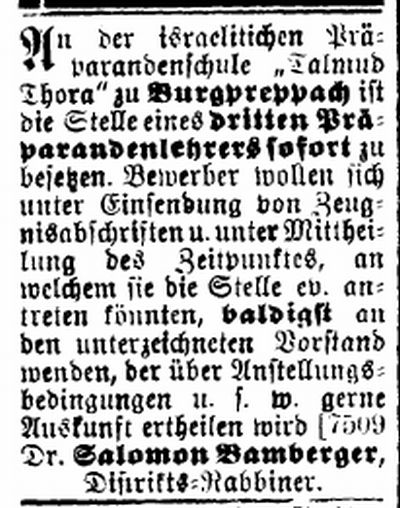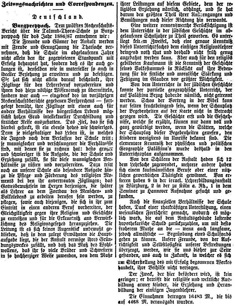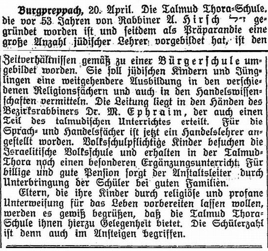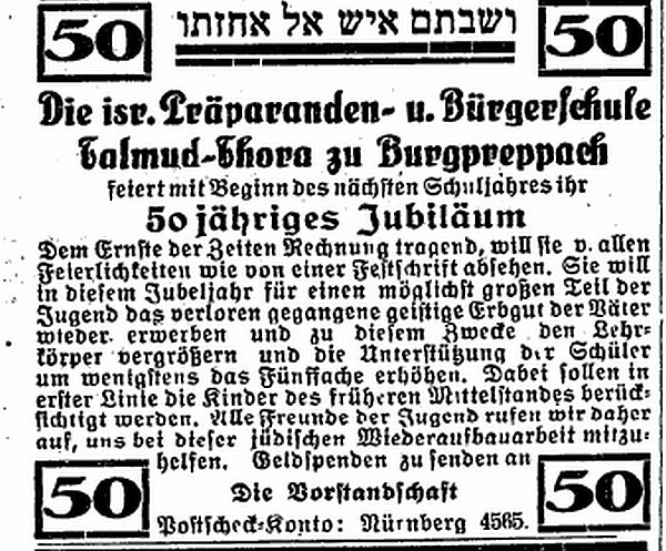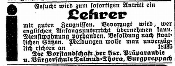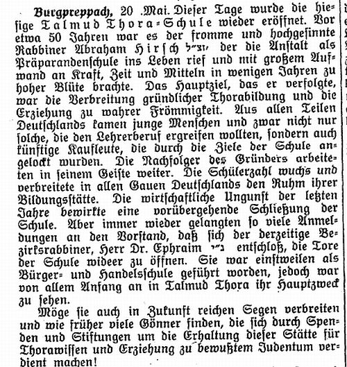und Bürgerschule Talmud Thora Burgpreppach (Unterfranken). Für den